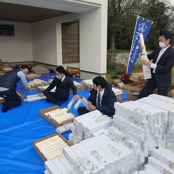こんにちは。防府本社の松本です。本日、社員一同で年末恒例のカレンダー封入を行いました。全部で2000個以上!!お施主のみなさま、届いたらぜひ使ってくださいね(^ ^)