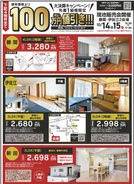| 期間 | 終了 10月14日(土)~10月15日(日) | 備考 | ※お問合せは防府店にお願い致します(TEL:0835-26-4123) |