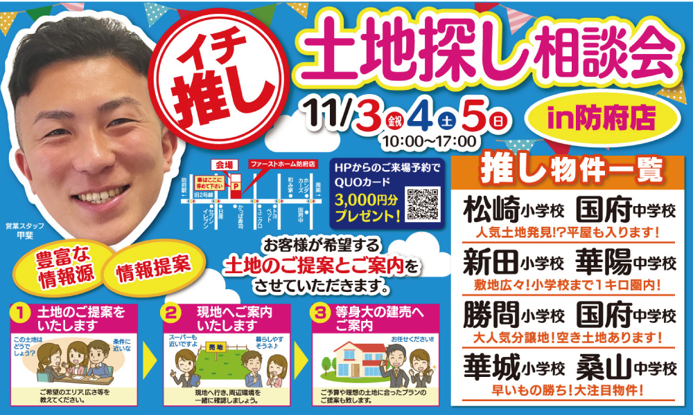 期間中HPからの来場予約でQUOカード3,000円分をプレゼント♪