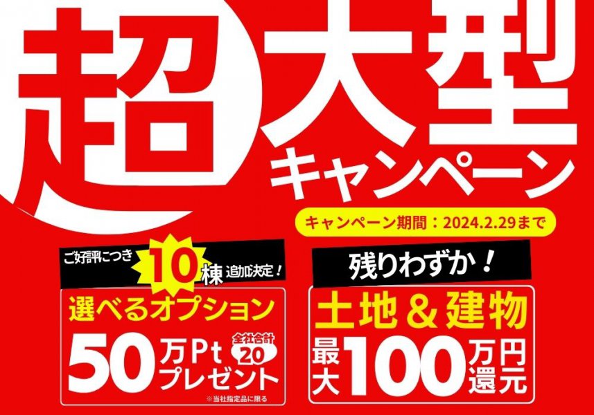 【ご好評につき、10棟追加決定!】上場1周年サンキュープレゼントキャンペーン