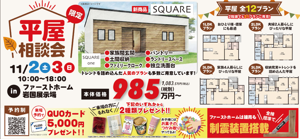 期間中HPからの来場予約でQUOカード最大5,000円分をプレゼント♪