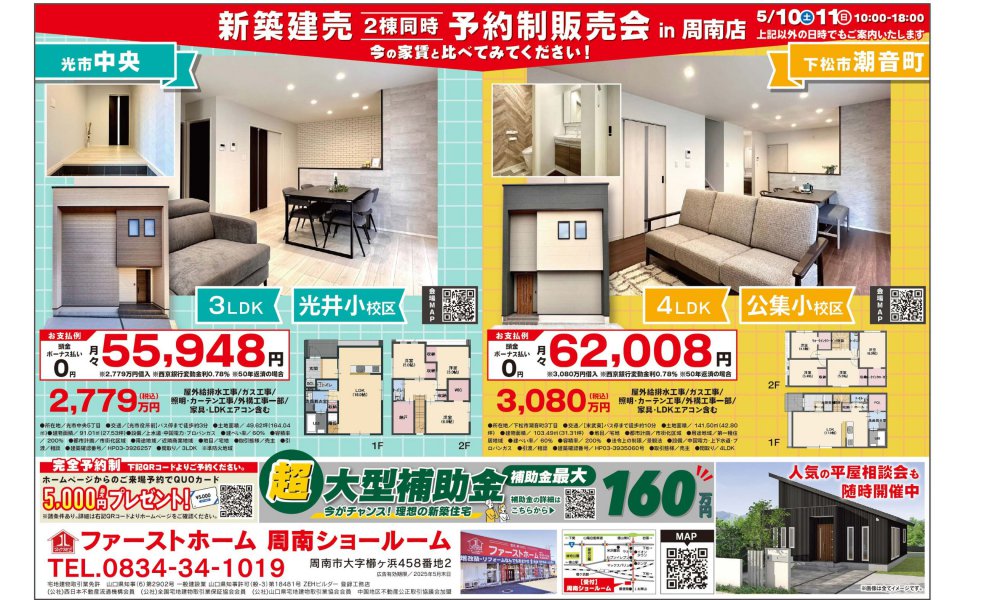 光市光井・下松市潮音町エリアの建売販売会を開催いたします。