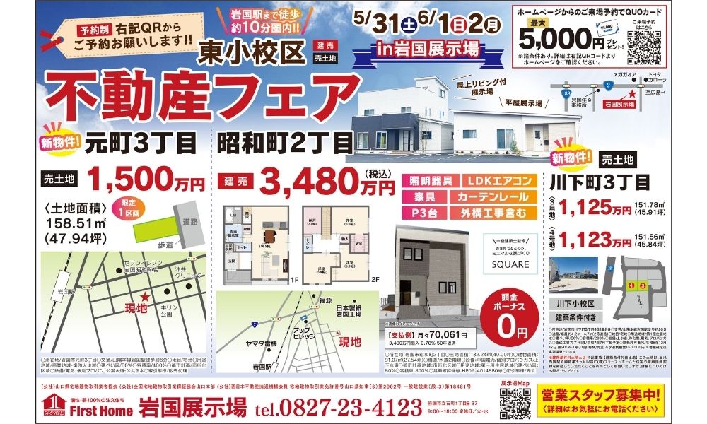 岩国駅から徒歩圏内!人気の東小校区エリアにて、不動産フェアを開催します!
