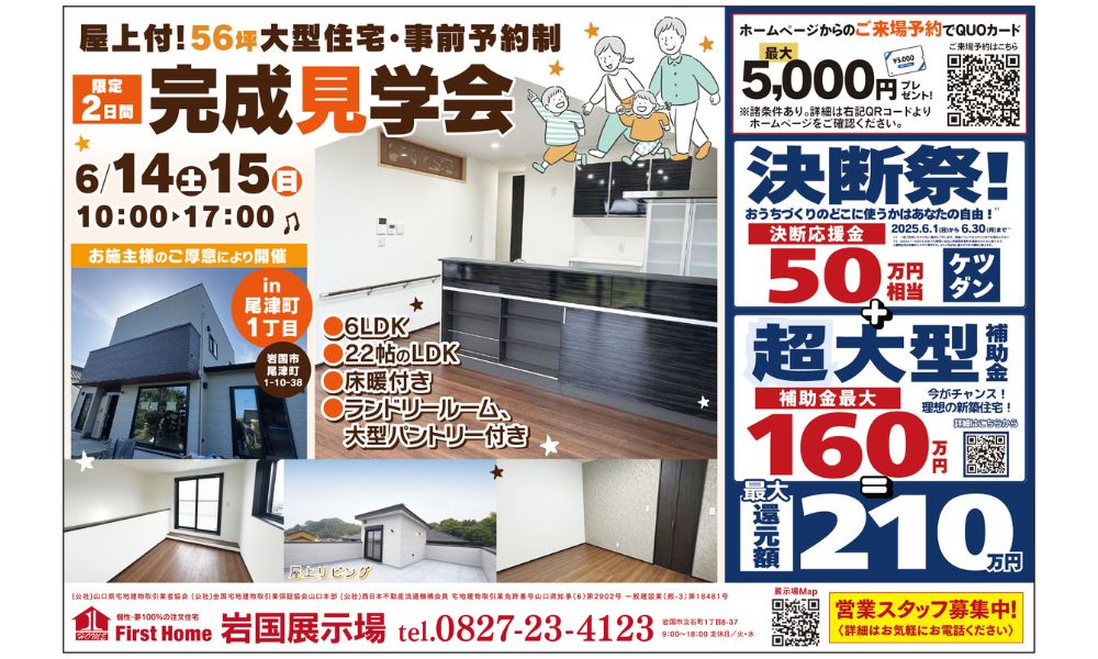 【岩国店】6/14.15の2日間限定★ 屋上リビング付のお家 完成見学会開催
