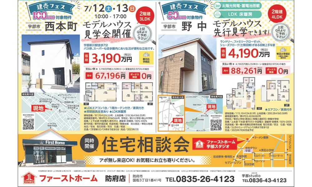 ファーストホームでは、宇部市にて2棟同時のモデルハウス見学会を開催いたします!