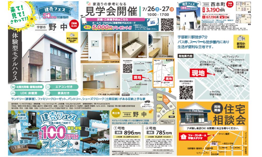 宇部市野中にて建売フェス対象物件の体験型モデルハウス見学会を開催します。