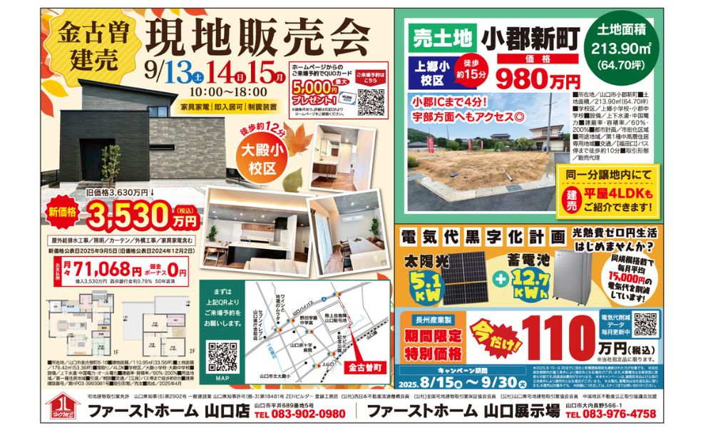 山口市金古曽で、新築建売住宅の現地販売会を開催します!