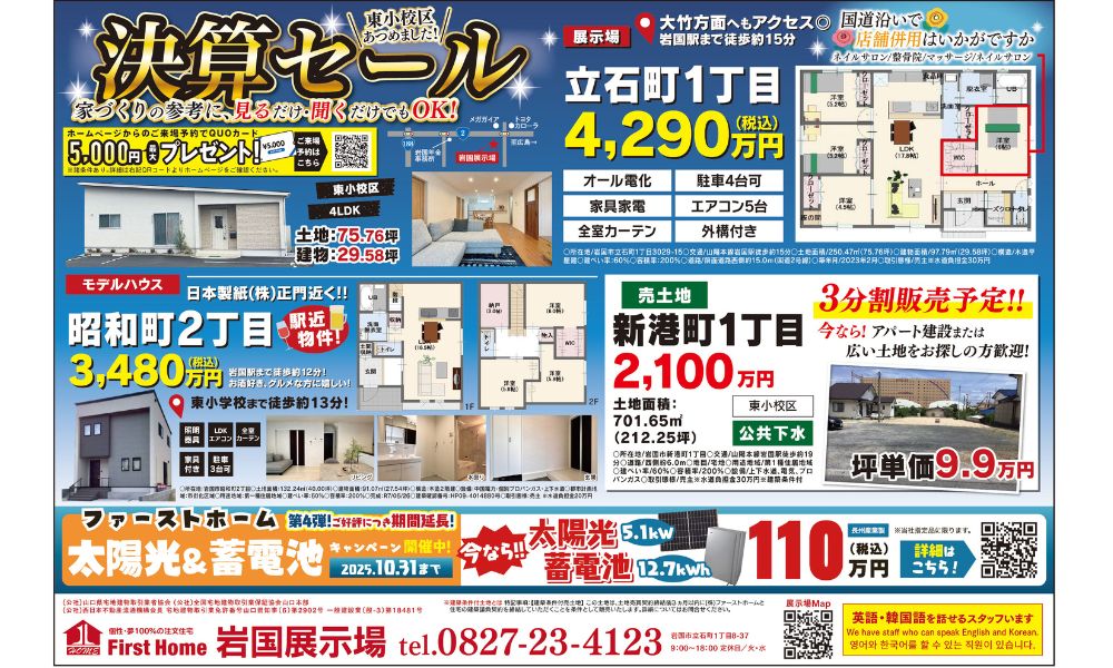 【岩国店】決算セール★平屋展示場売却&昭和町建売販売会開催!
