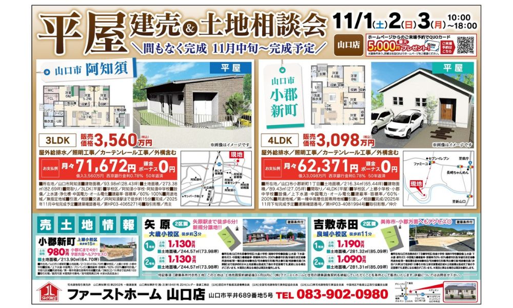 「矢原」「吉敷赤田」など、人気エリアの売土地もご相談いただけます。