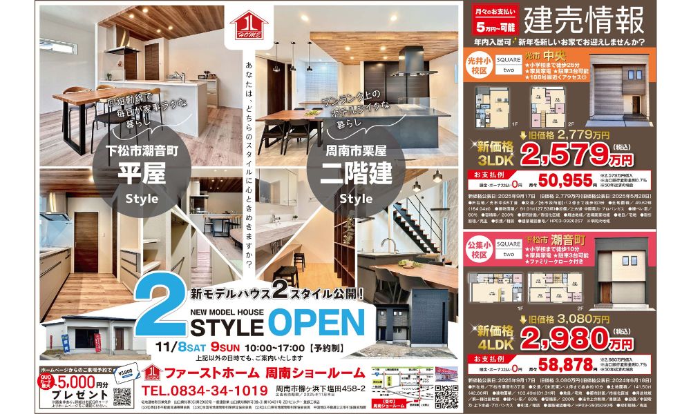 【周南店】2Styleモデルハウス見学会開催!平屋&二階建