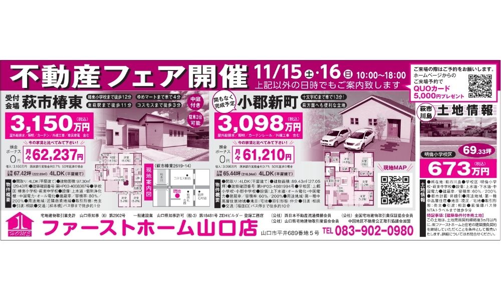 | 期間 | 終了 11月15日(土)~11月28日(金) | 備考 | ※こちらのイベントの詳細につきましては山口店(TEL:083-902-0980)までお問い合わせください。 |