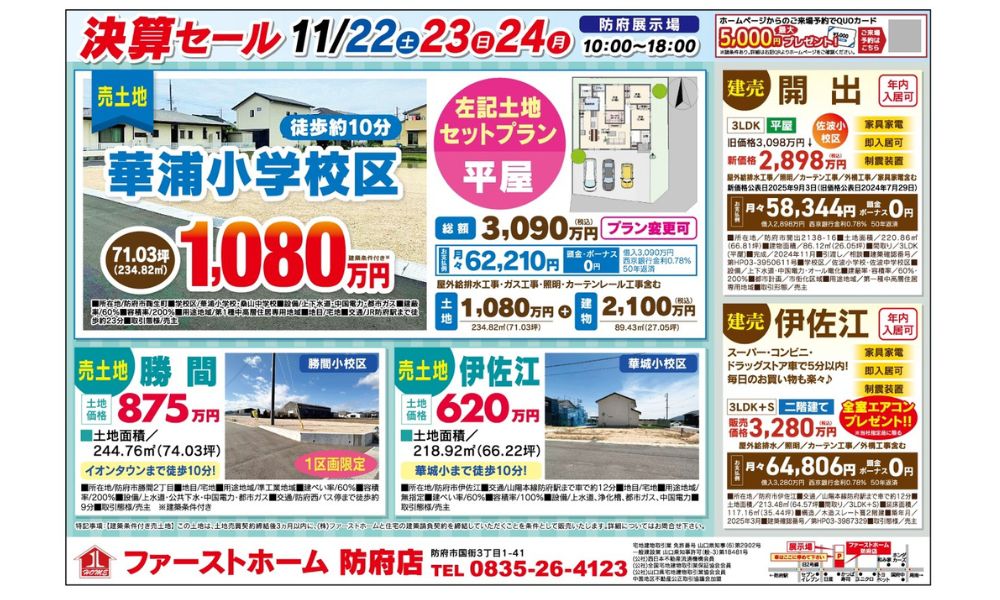 華浦小まで徒歩約10分の好立地!セットプラン(平屋3LDK/3,090万円)もご用意しています。
