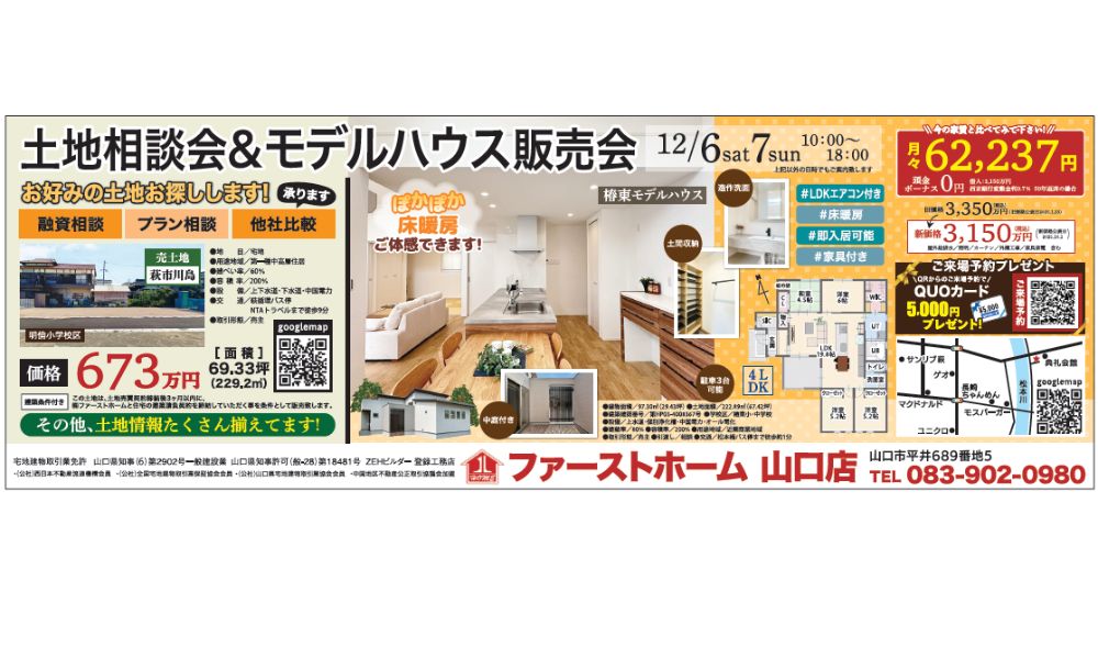 萩市椿東にて、モデルハウスの販売会を開催いたします。