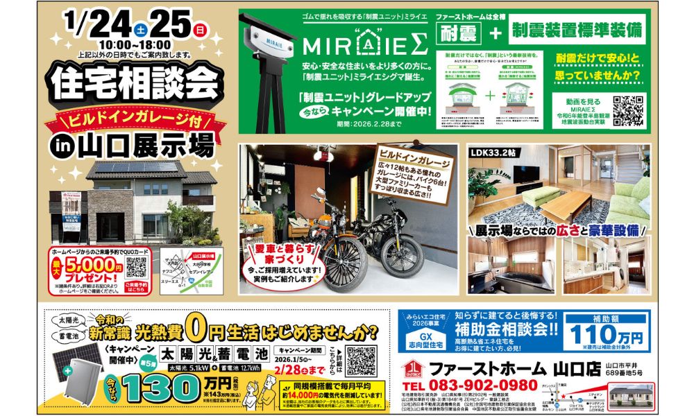 ファーストホーム山口展示場にて「住宅相談会」を開催いたします。