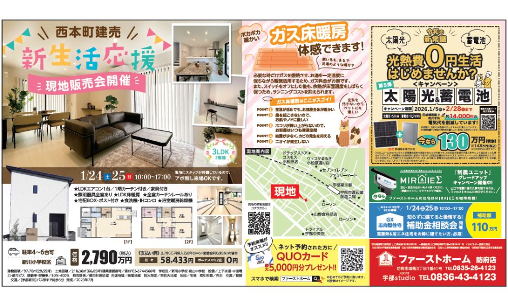 ファーストホーム防府店では、西本町建売住宅にて 現地販売会を開催します。
