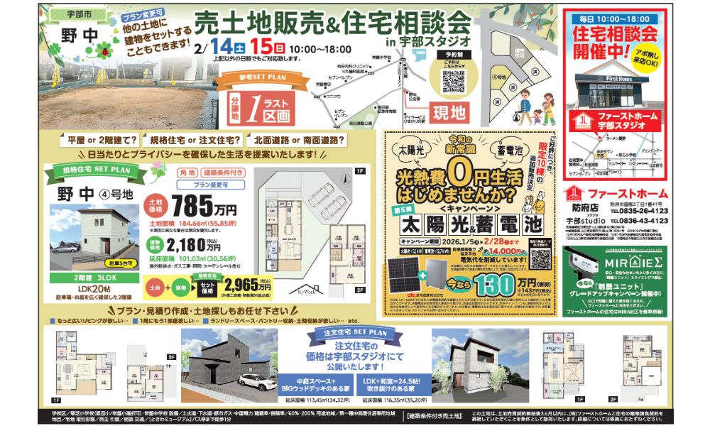 宇部市野中エリアにて、売土地販売&住宅相談会を開催します。