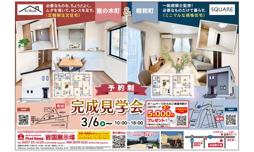 【岩国店】室の木町&昭和町 ダブル完成見学会開催