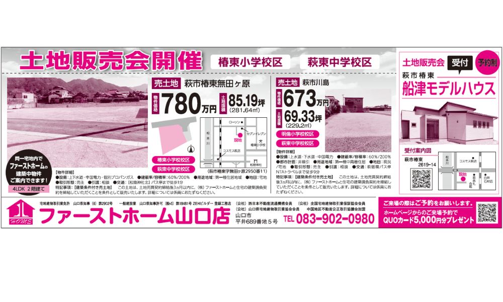 土地販売会 開催【萩市椿・川島】