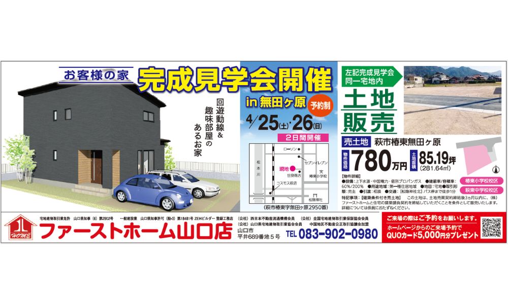 【山口店】萩市無田ヶ原 お客様の家完成見学会