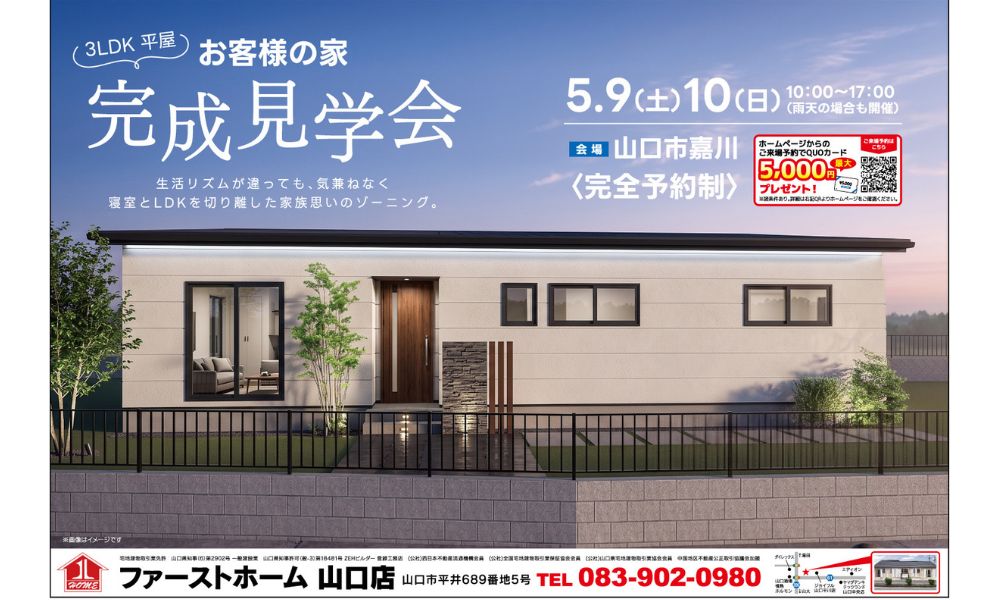山口市嘉川にて、お客様のご厚意により完成見学会を開催いたします。