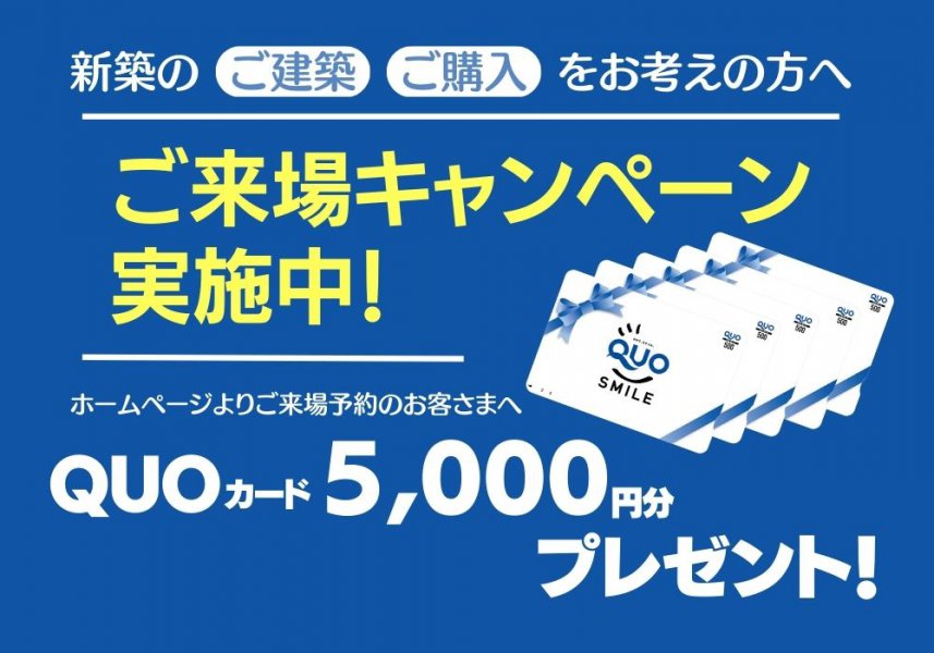期間中HPからの来場予約でQUOカード5,000円分をプレゼント♪
