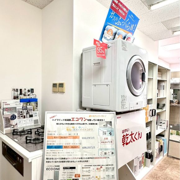 外装材や床材、住宅設備などの実物サンプルを多数展示し、住まいづくりのイメージがより具体的に膨らむ空間となっております。ガスコンロやガス乾燥機の実物展示、断熱仕様の体感コーナーなど、設備選びの参考になるコンテンツも充実。